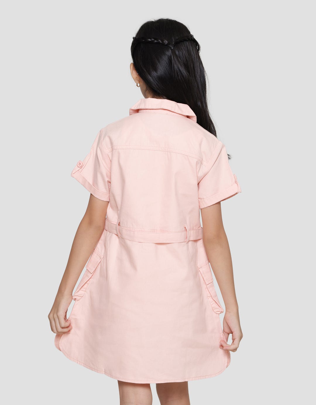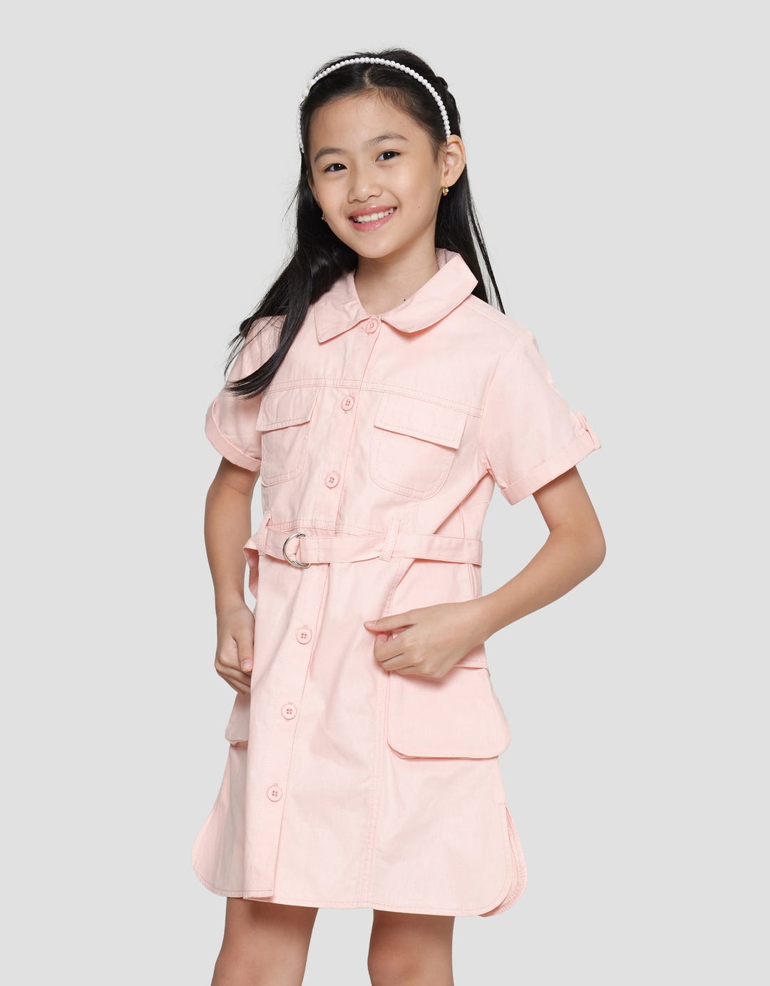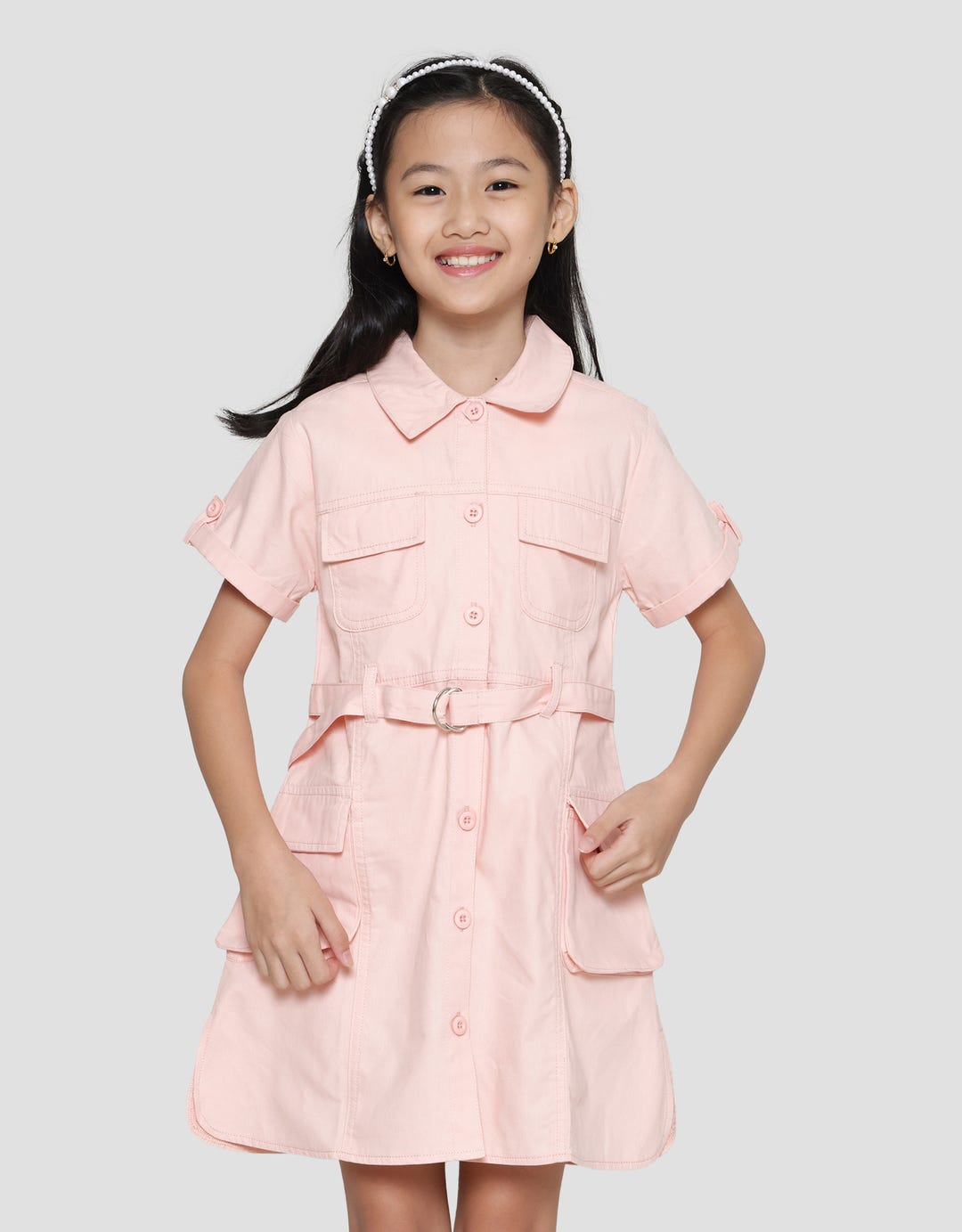 Little M Safari Cargo Bulat Midi Dress Lengan Pendek Anak Perempuan