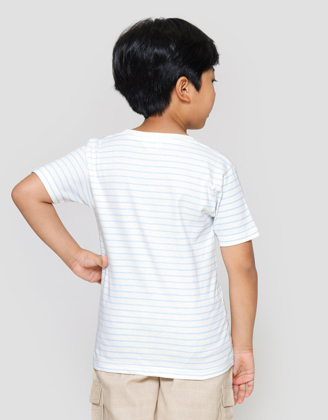 Kaos anak laki-laki dengan design yang simple dan casual, cocok untuk digunakan anak pada moment berharga mereka untuk menunjang penampilan anak menjadi lebih menawan. Model yang simple mudah untuk dipadankan dengan bawahan kesukaan mereka dan membuat mereka nyaman dalam beraktifitas sehari-hari.