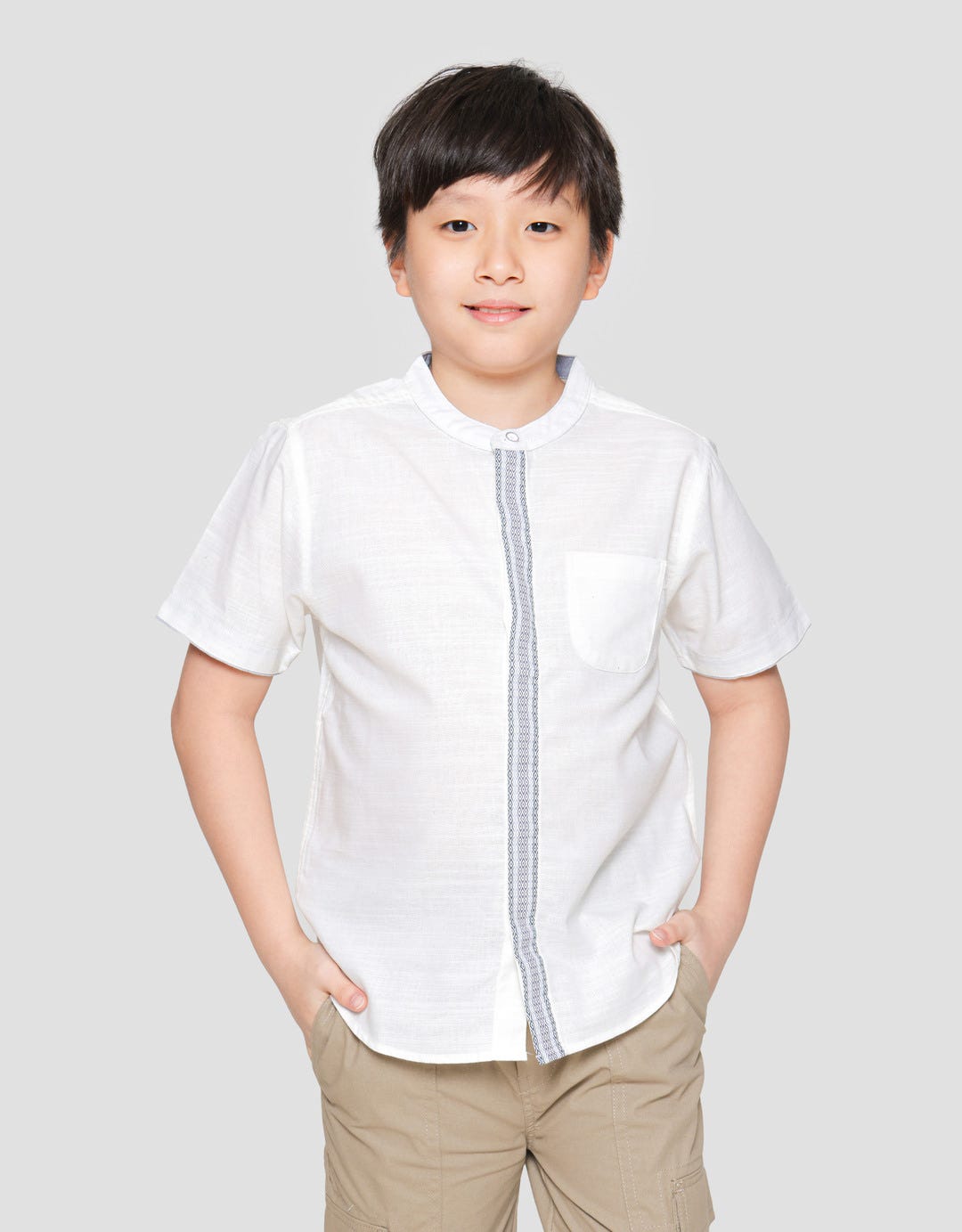 Kemeja koko anak laki-laki dengan design yang simple dan sleek, cocok untuk digunakan anak pada moment berharga mereka untuk menunjang penampilan anak menjadi lebih menawan. Model yang simple mudah untuk dipadankan dengan bawahan kesukaan mereka dan membuat mereka nyaman dalam beraktifitas sehari-hari.