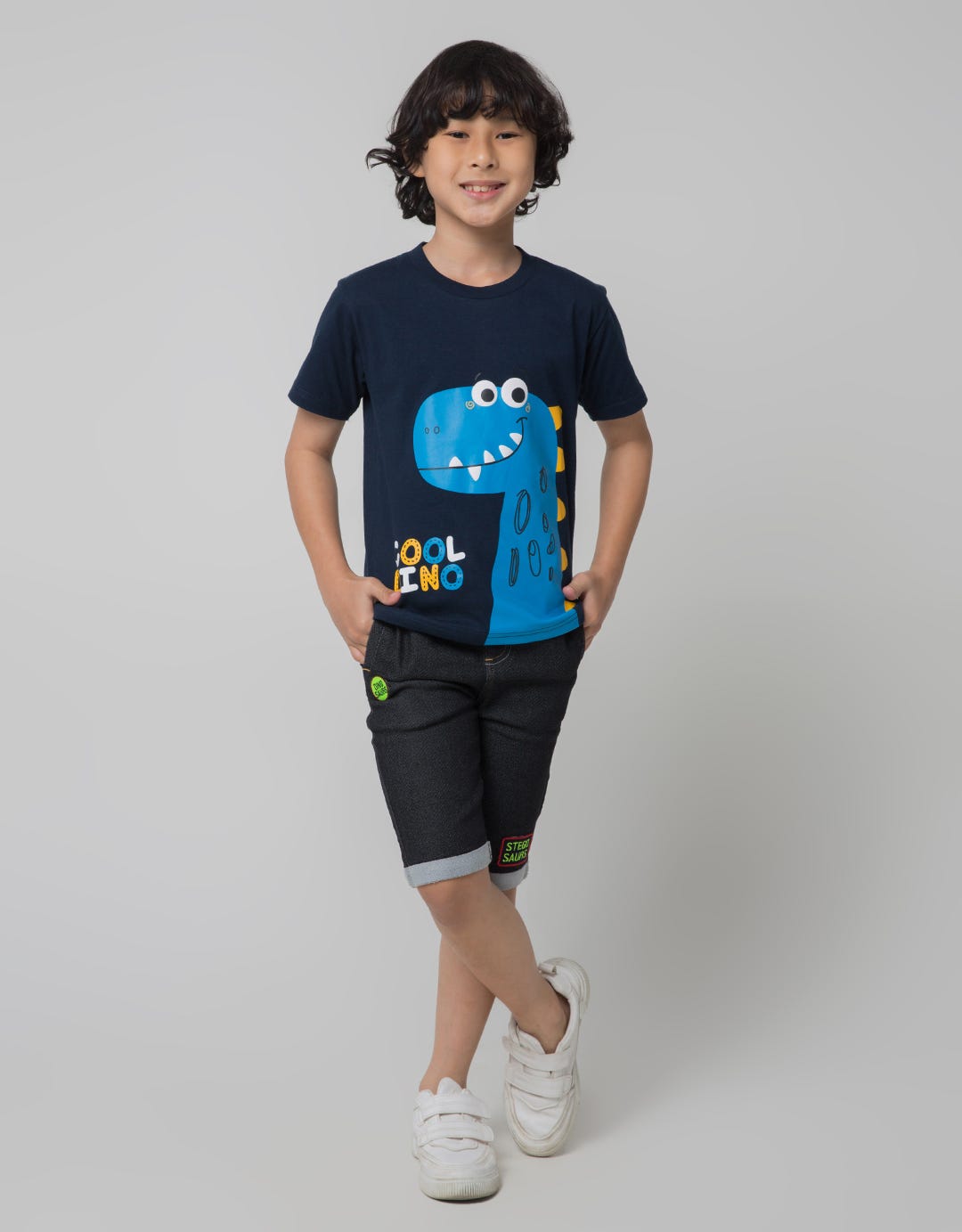 Little M Short Pants Denim Bordir Stegosaurus