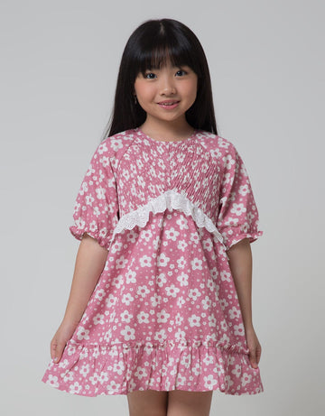 Little M Short Sleeve Midi Dress 3/4 Sleeve Smok With Lace
