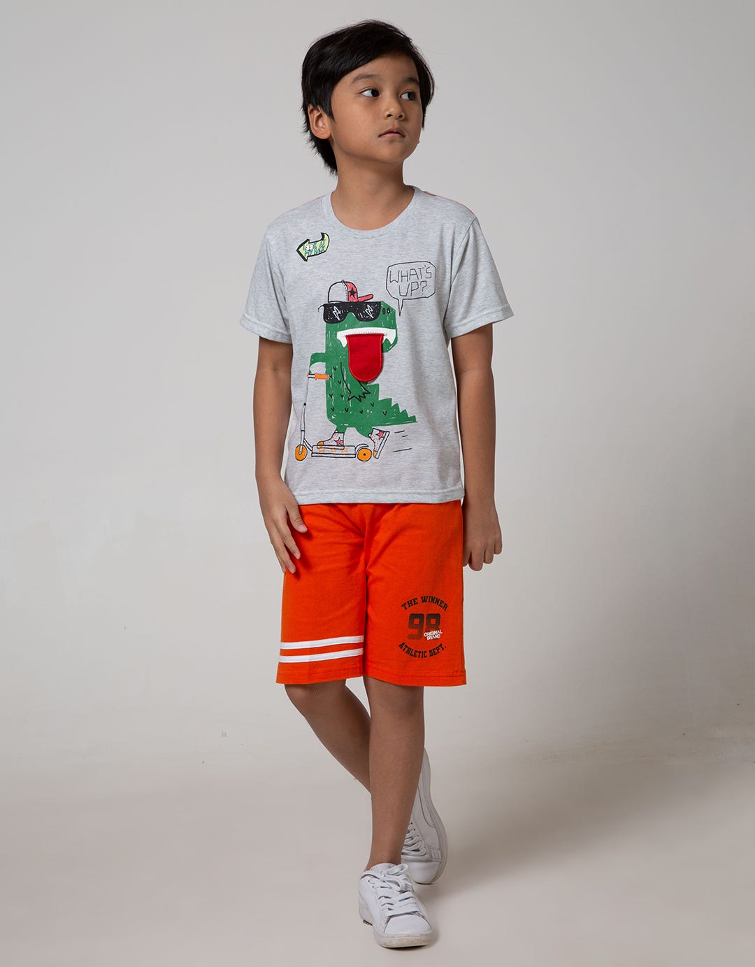 Little M Short Sleeve T-Shirt Dino Skate Aplikasi Flip Lidah