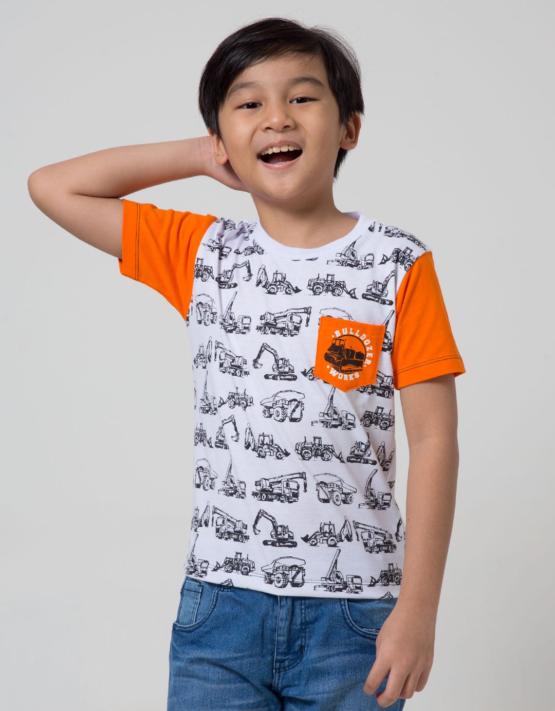 Little M Short Sleeve T-Shirt Fullprint Crane Excavator Kantong Print