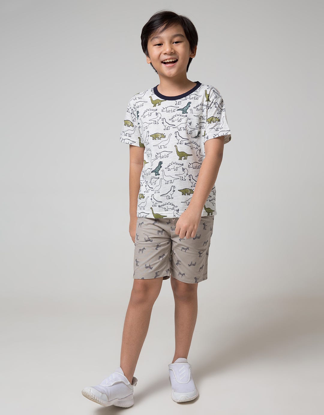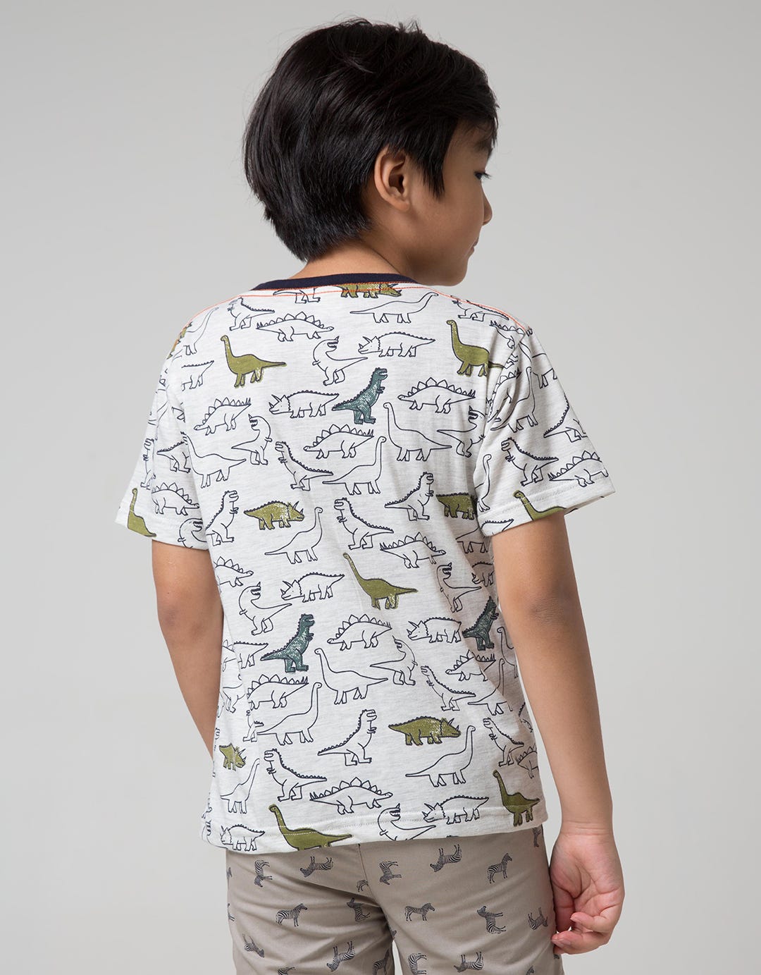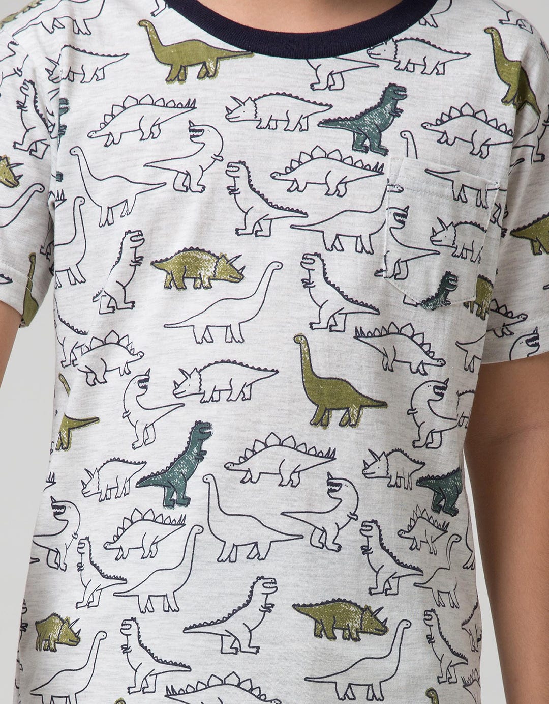 Little M Short Sleeve T-Shirt Fullprint Dino Kantong Fptd163:Misty Light Gr:M:Print:Short Sleeve T-Shirt