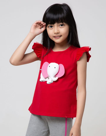 Little M Short Sleeve T-Shirt Gajah Lengan Ruffle