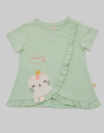 Little M Short Sleeve T-Shirt Ruffle Silang Kucing
