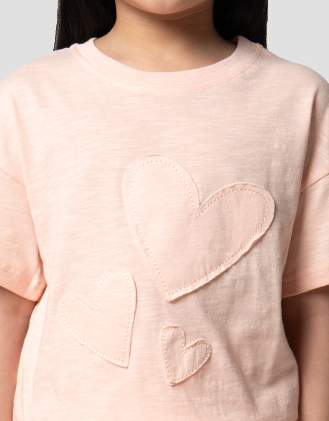 Little M Slub With Patch Heart Pakaian Setelan Anak Perempuan