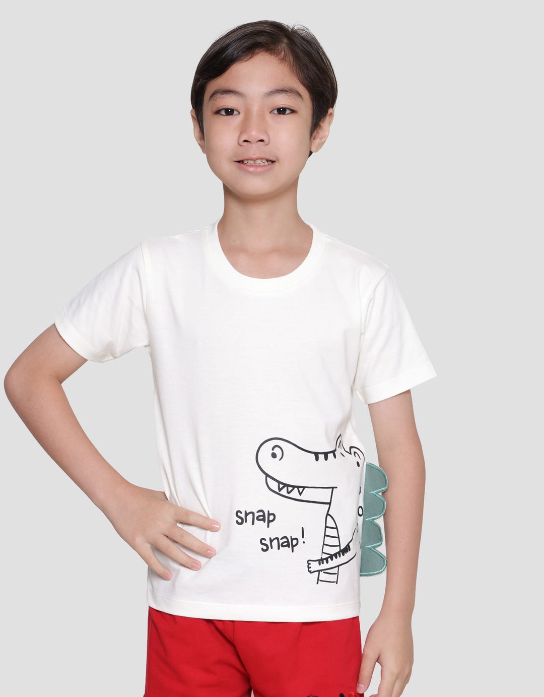 Little M Solid Combed Aplikasi Croco Kaos Lengan Pendek Anak Laki-Laki