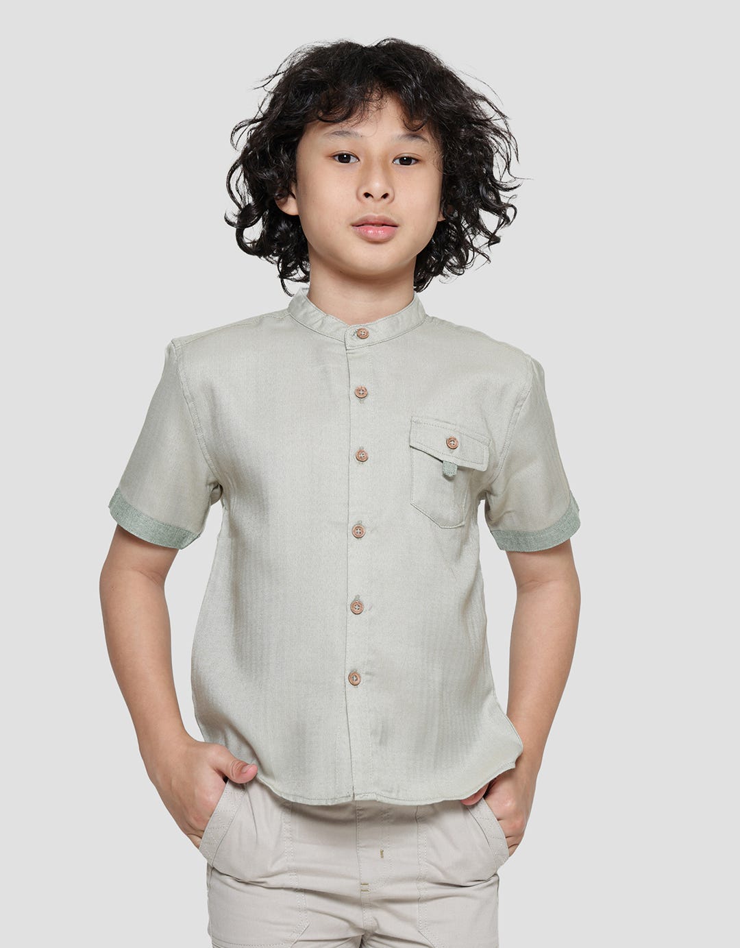 Little M Solid Heringbone Kemeja Lengan Pendek Anak Laki-laki