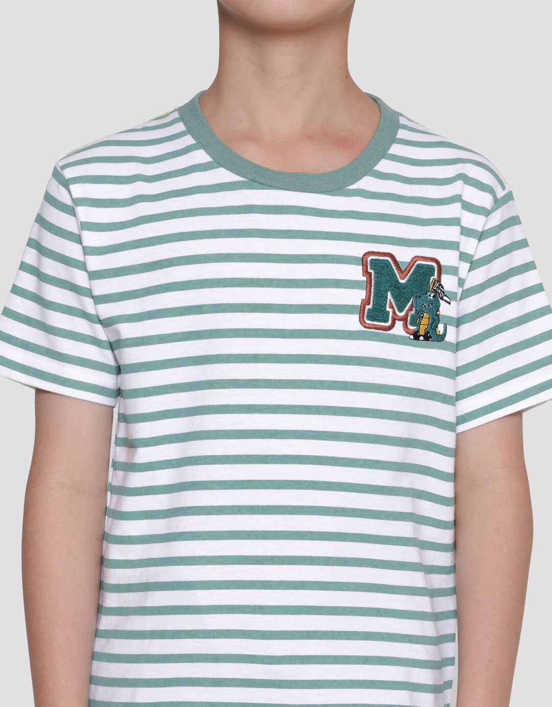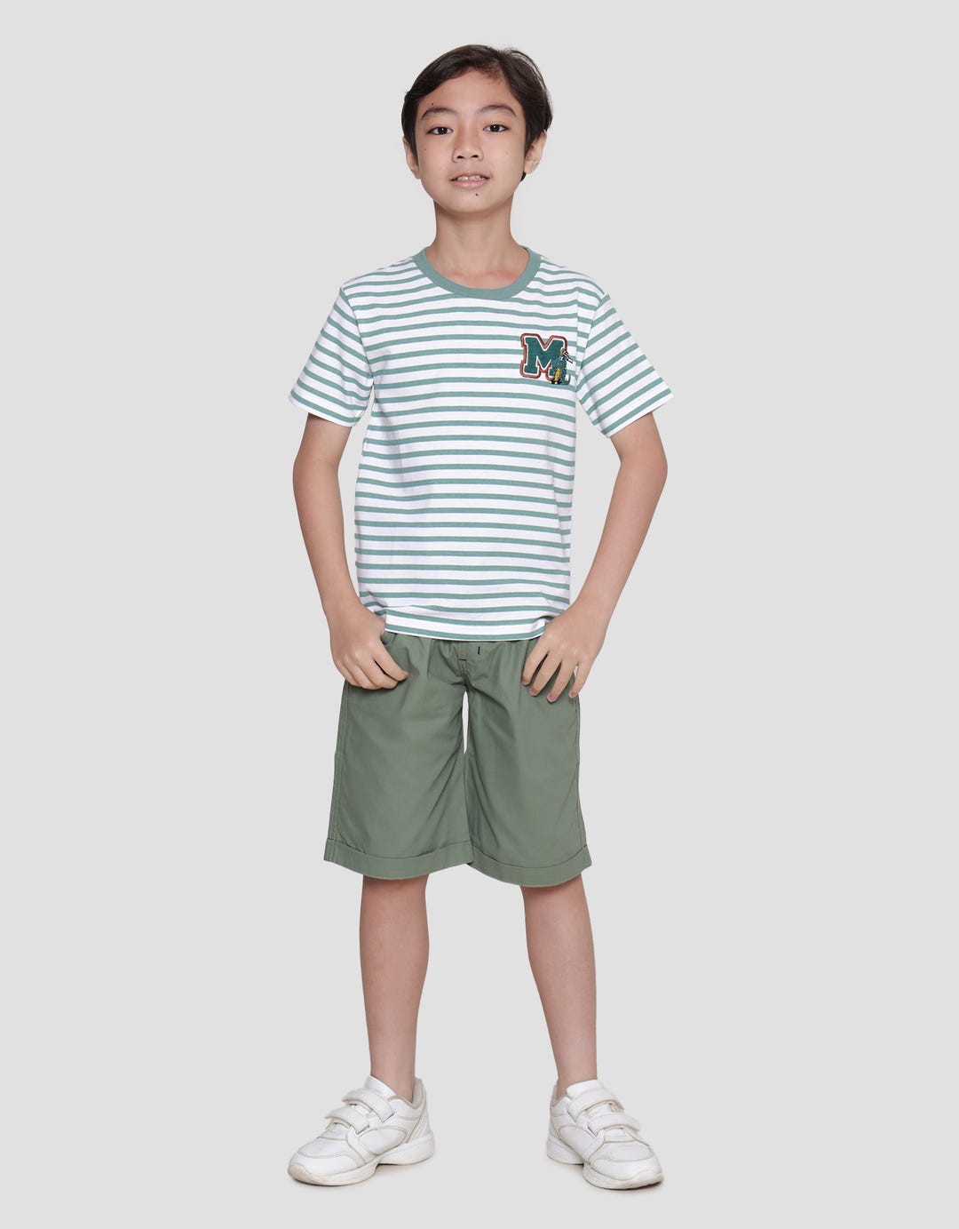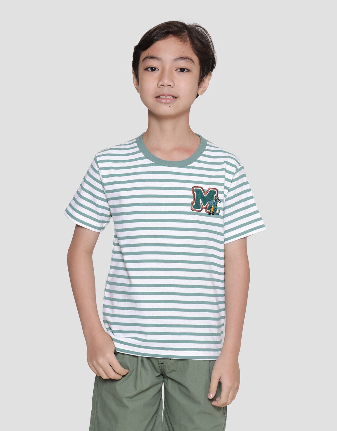 Little M Stripe Aplikasi Kaos Lengan Pendek Anak Laki-Laki