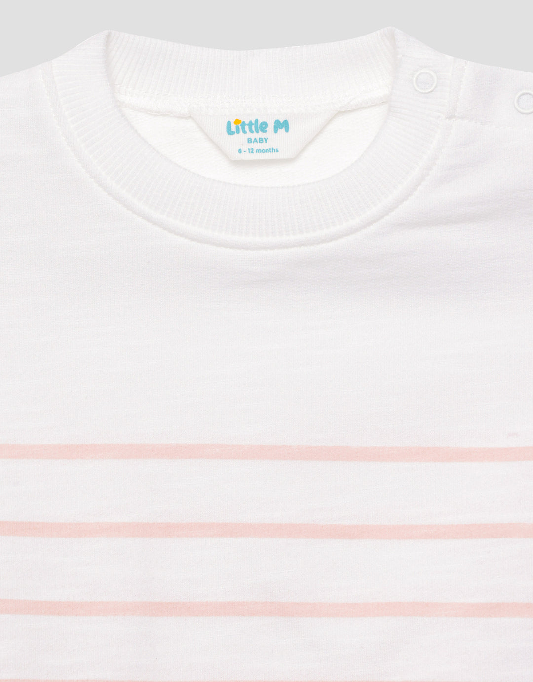 Little M Stripe Patch Bear Kaos Lengan Pendek Anak Perempuan