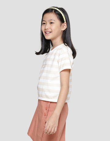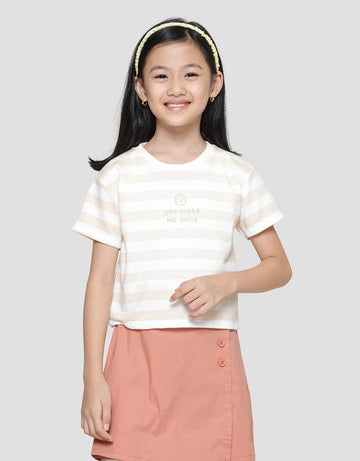 Little M Stripe Sablon Tengah 1 Kaos Lengan Pendek Anak Perempuan