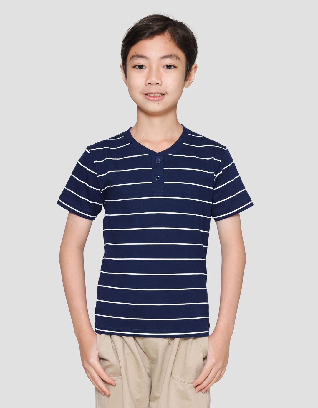 Little M Stripe Slub Fake Kaos Henley Lengan Pendek Anak Laki-laki