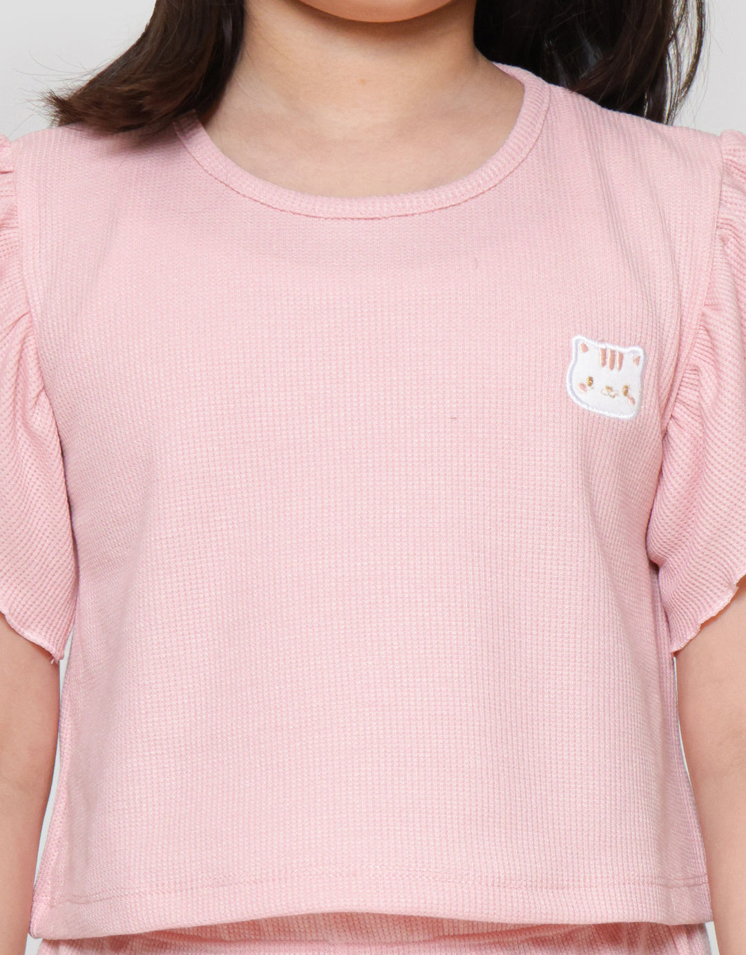 Little M Tekstur Stretch Ruffle Pakaian Set Anak Perempuan