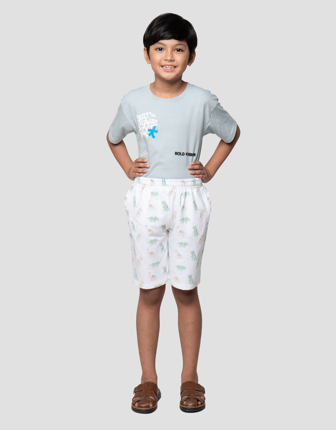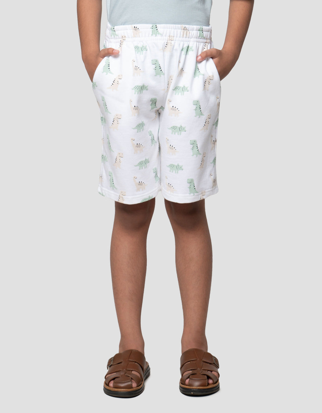 Little M Terry Print Dino Celana Pendek Anak Laki-laki