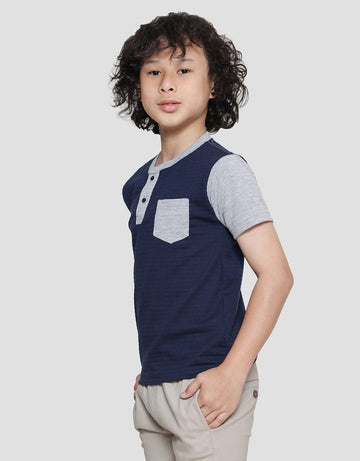Little M Texture Kaos Henley Lengan Pendek Anak Laki-laki