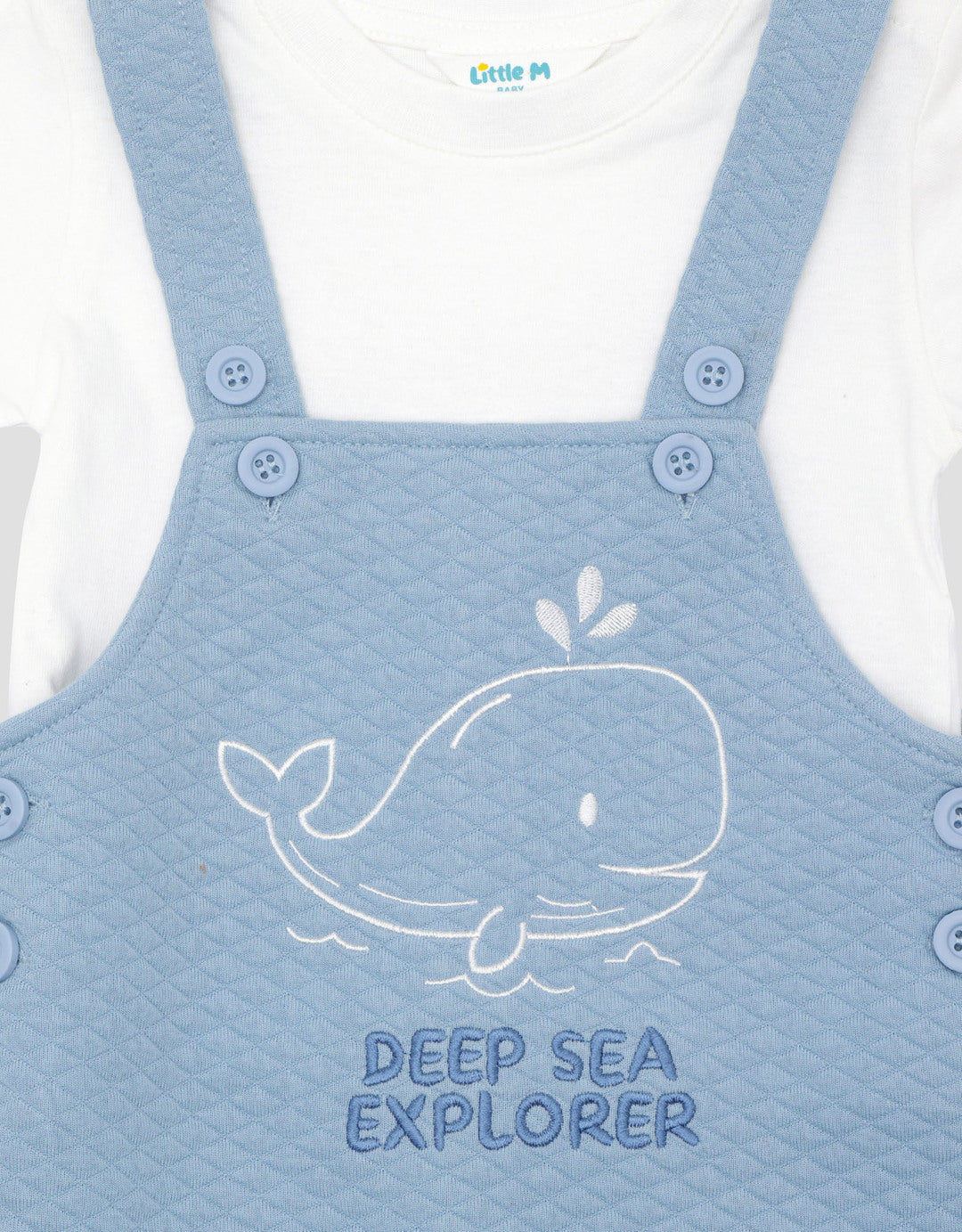 Little M Texture Quilting Bordir Shark Jumpsuit Overall Bayi