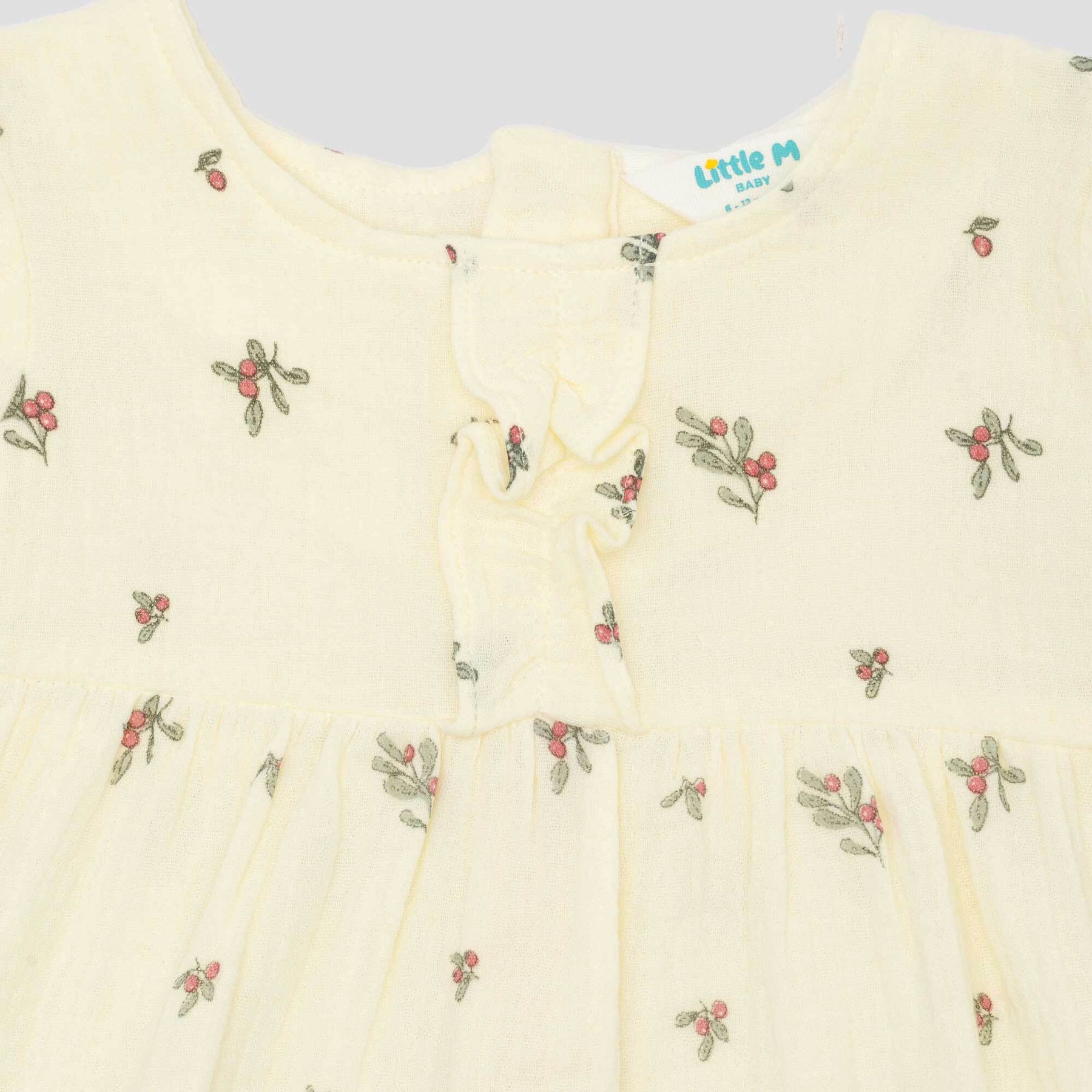 Little M Textured Cringcle Print Cherry Midi Dress Bayi