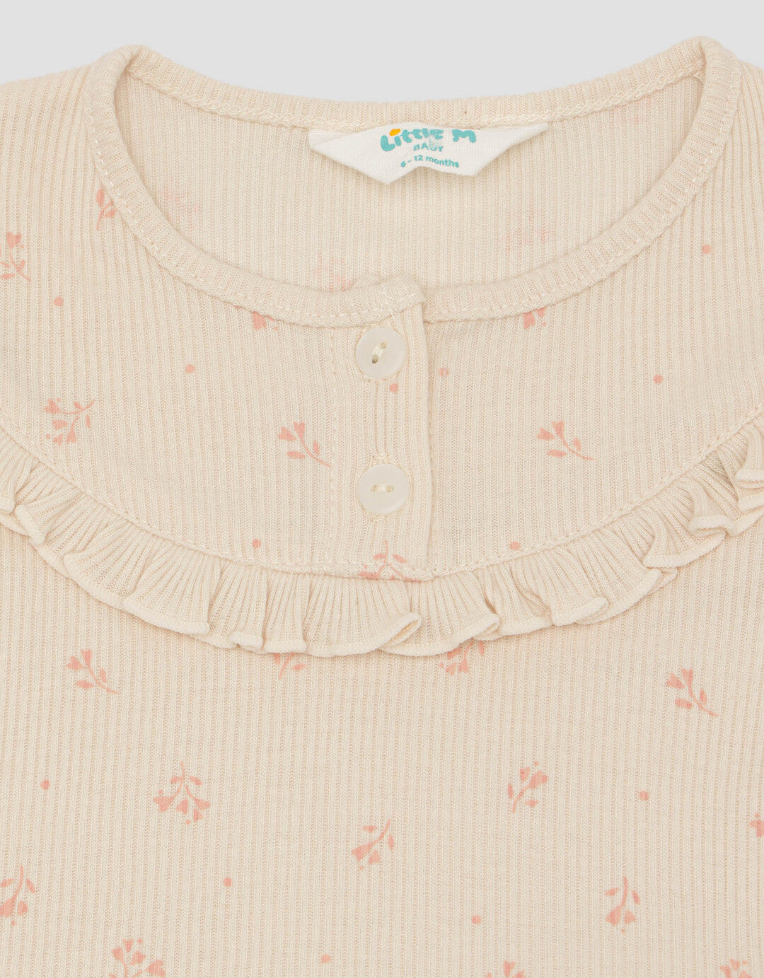 Little M Textured Rib Flowers Baju Set Anak Perempuan