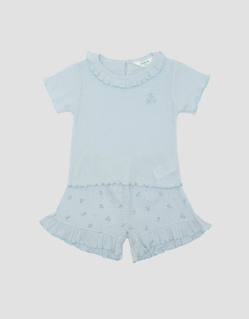 Little M Textured Rib Flowers Baju Set Bayi Perempuan
