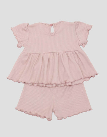 Little M Textured Rib Stripe Pakaian Setelan Anak Perempuan