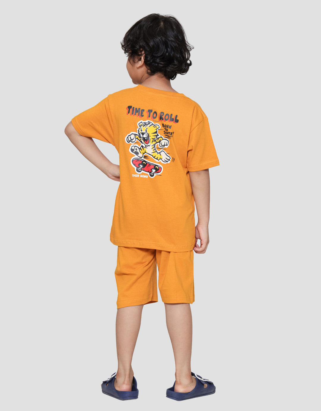Little M Tiger Born To Skate Back Print Pakaian Setelan Anak Laki-laki