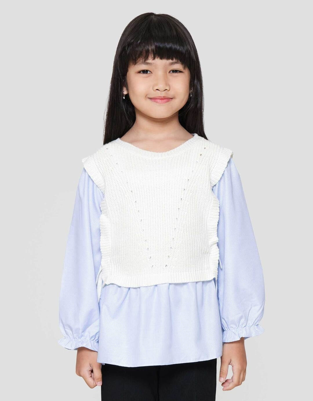 Little M Top Flat Knit With Kemeja Anak Perempuan