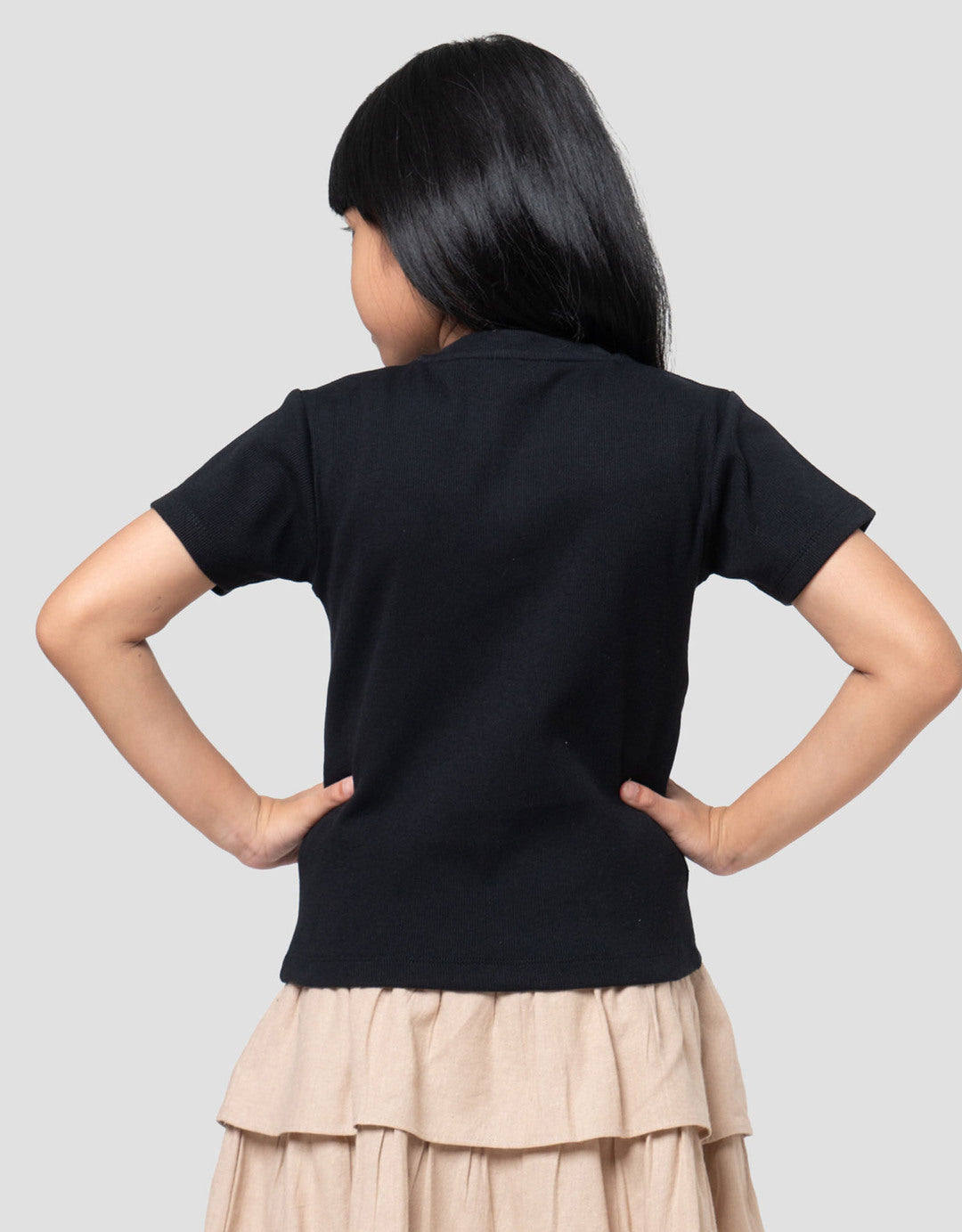 Kaos anak perempuan dengan model yang simple dan casual, cocok untuk dijadikan outifit keseharian saat anak beraktifitas. Bahan yang berkualitas akan nyaman saat digunakan sepanjang hari.