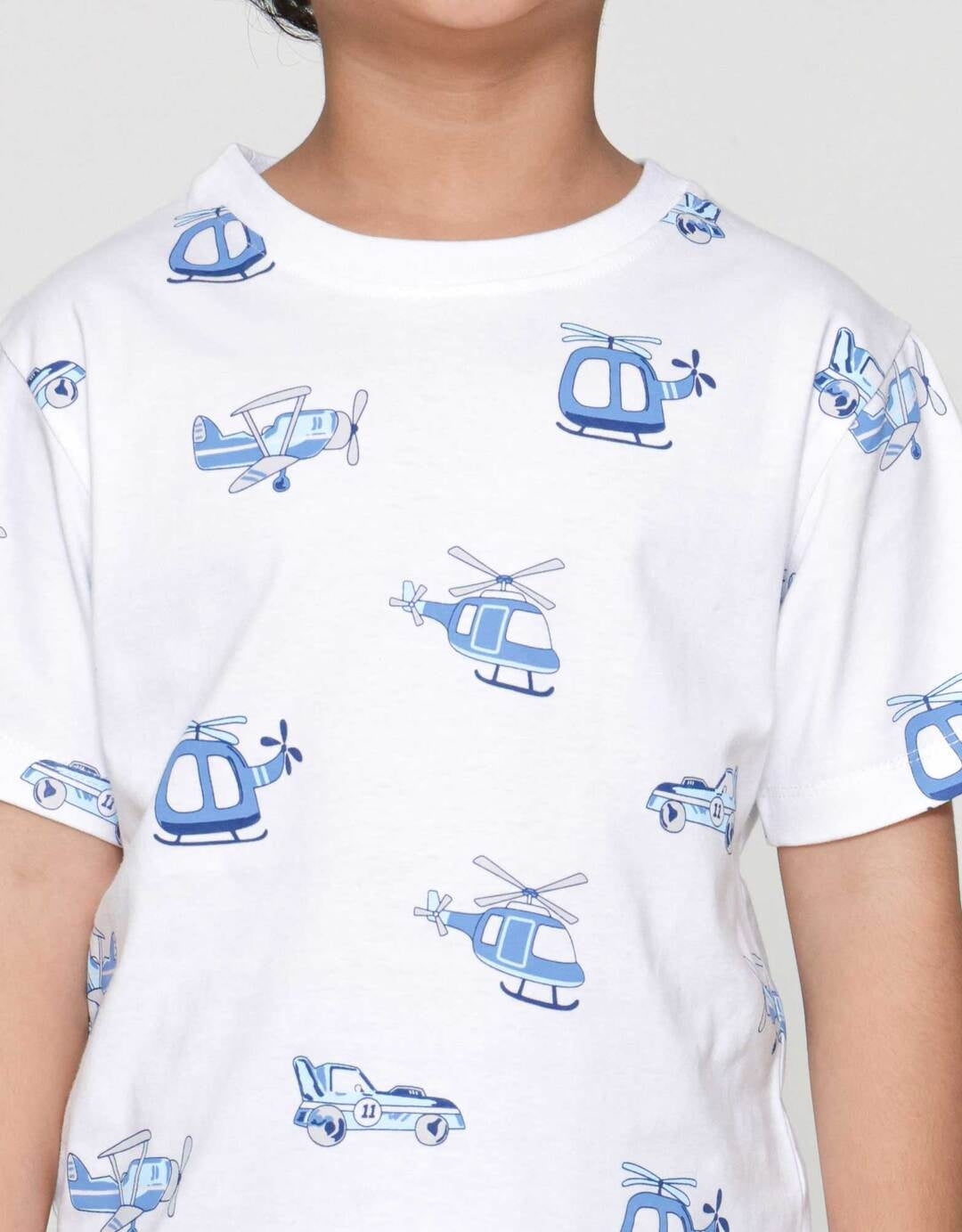 Little M Transport Ful Print Pakaian Setelan Anak Laki-laki
