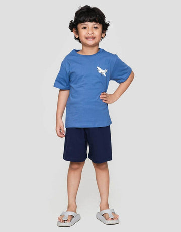 Little M Transport Plane Dada Kiri Pakaian Setelan Anak Laki-laki