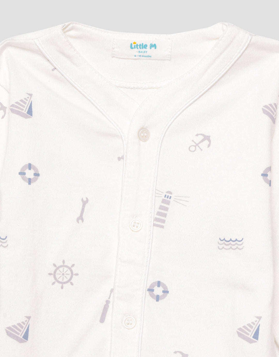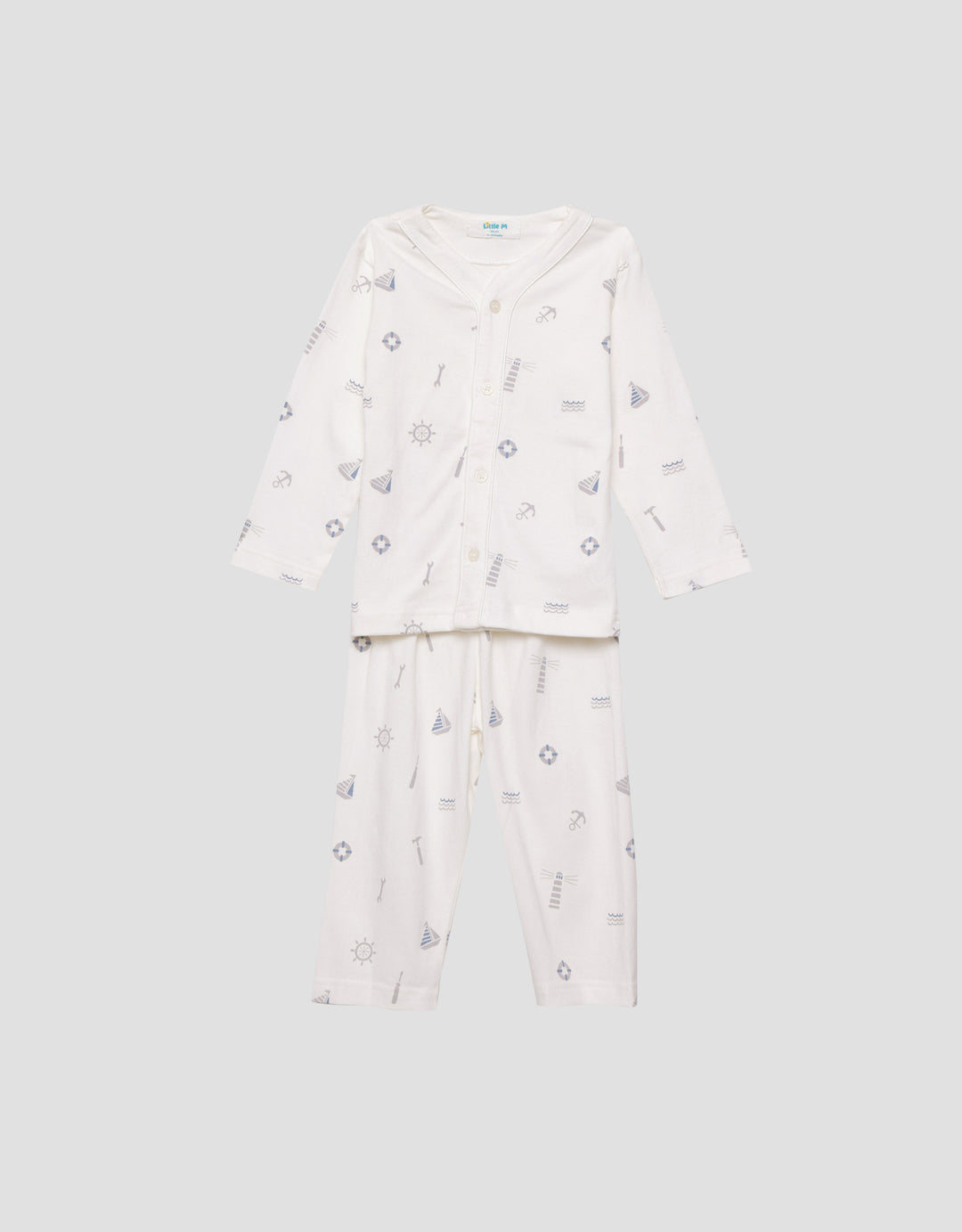 Little M V-Neck Fullprint Ship Setelan Piyama Anak Laki-laki