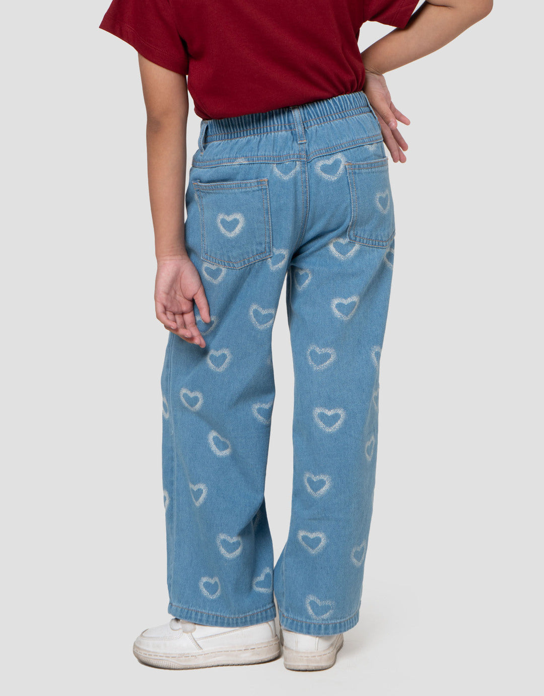 Little M Wide Leg Aop Heart Celana Denim Anak Perempuan