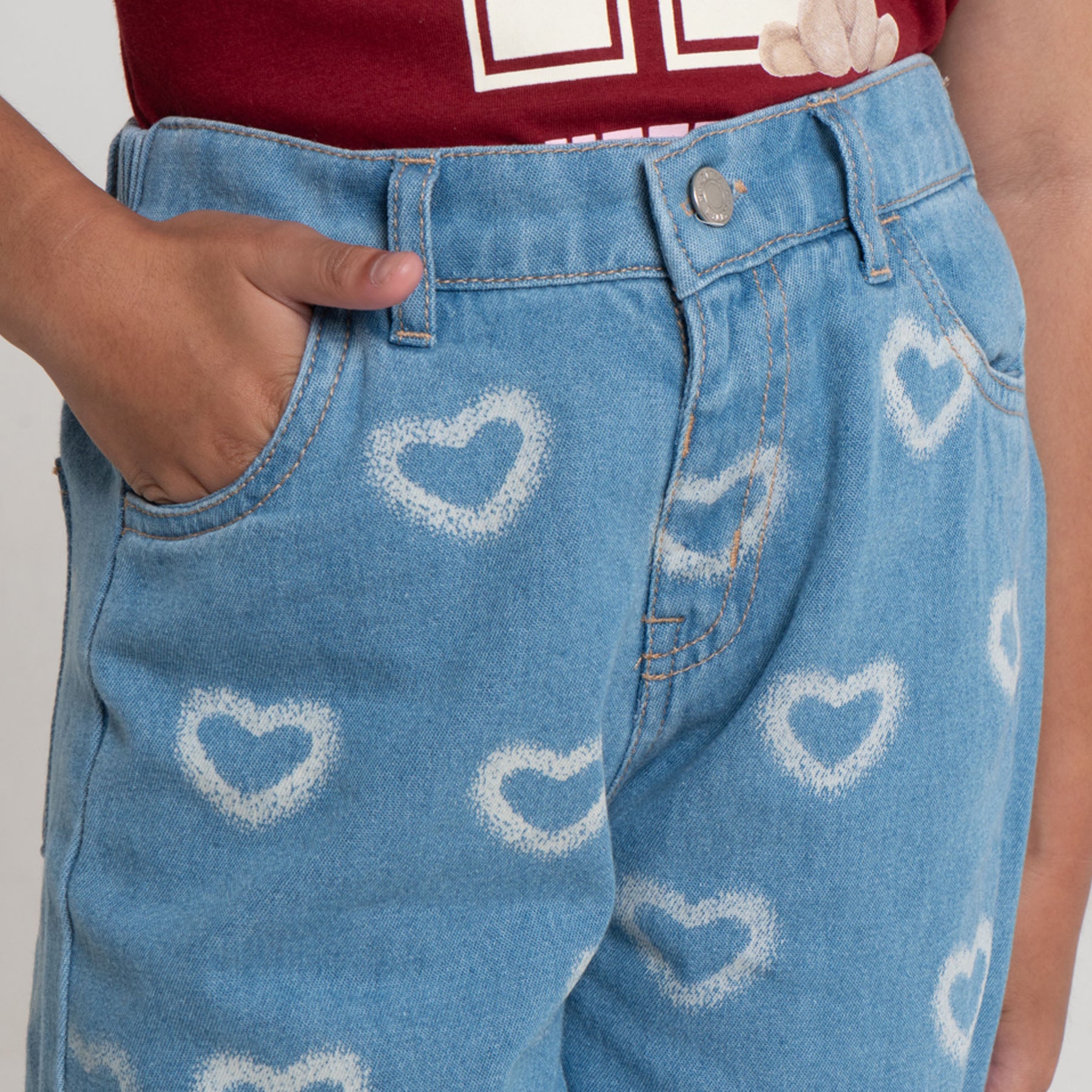 Little M Wide Leg Aop Heart Celana Denim Anak Perempuan