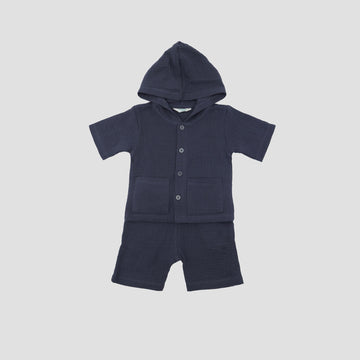 Little M Woven Cringcle With Hoodie Pakaian Set Bayi