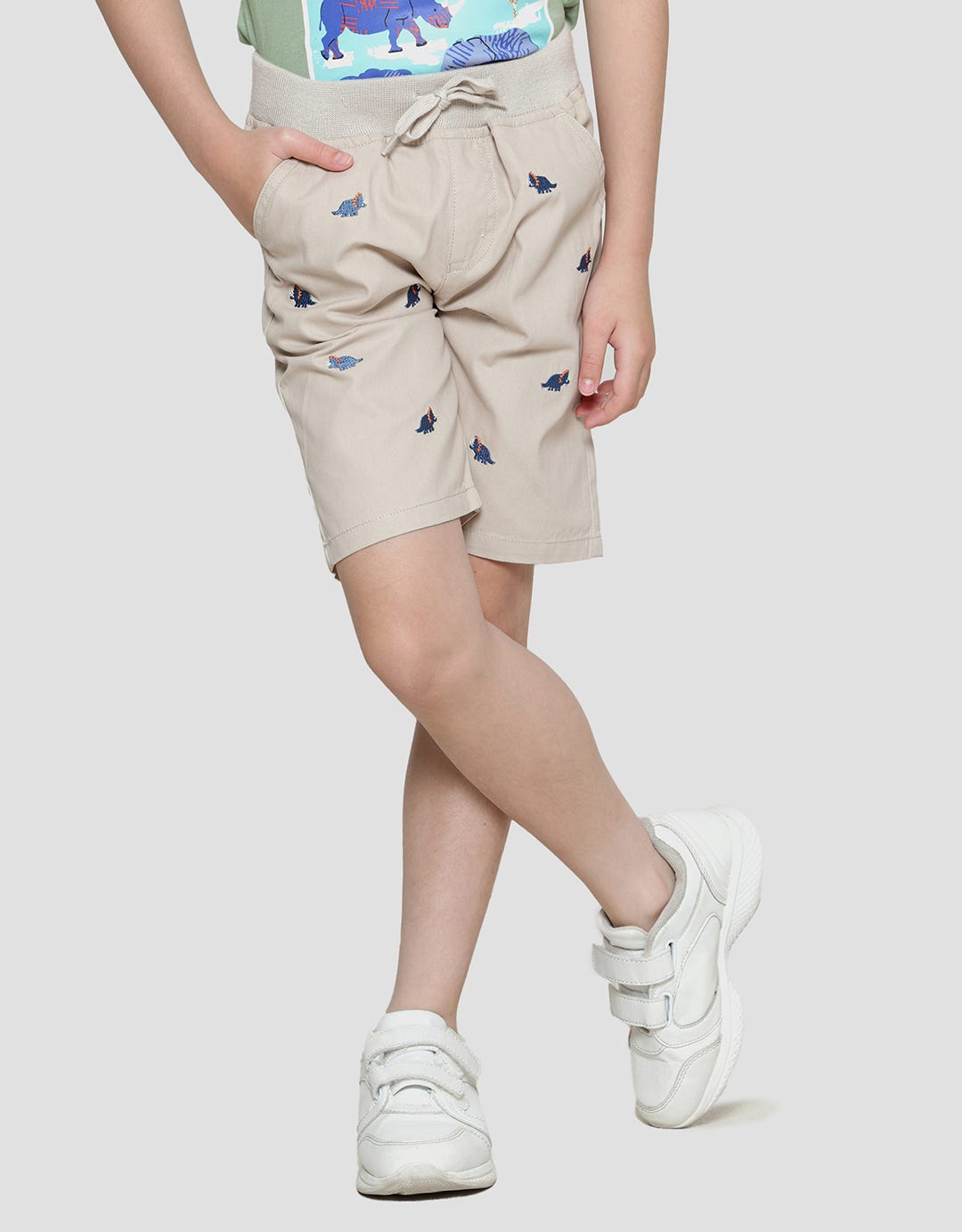 Little M Woven Pinggang Rib Bordir Celana Pendek Anak Laki-laki