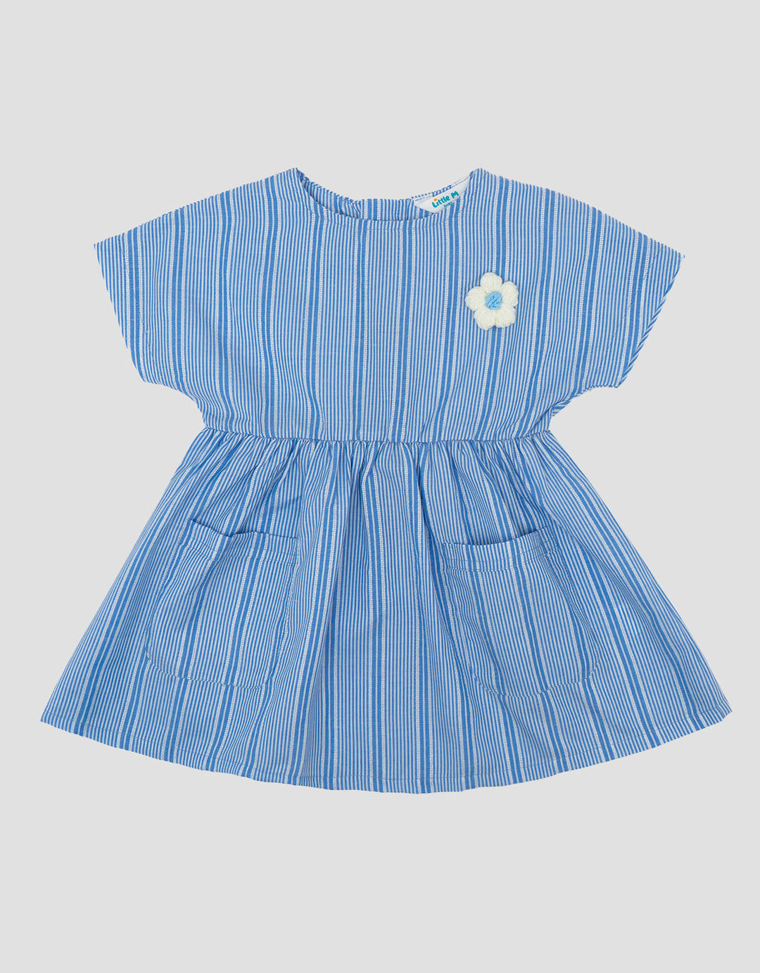 Little M Woven Textured Salur Dress Bayi