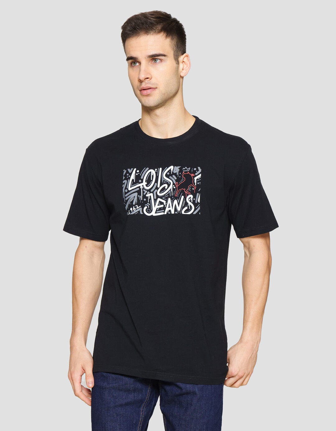 Lois Wording Brand Logo Kaos Lengan Pendek Pria