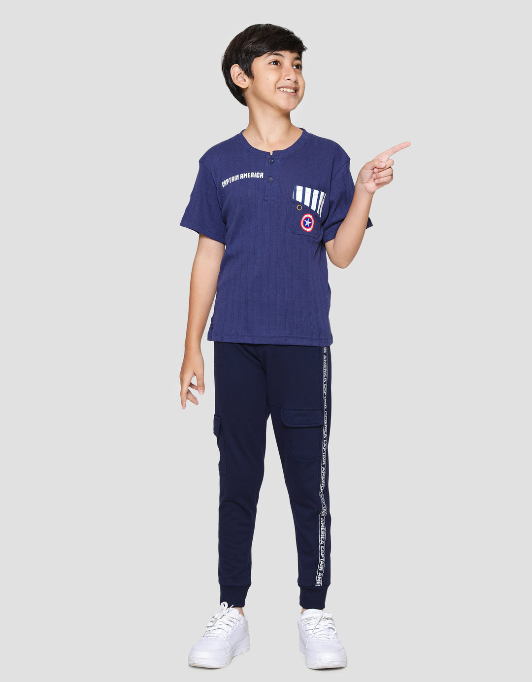 Marvel Captain America Kantong Kombinasi Kaos Henley Anak Laki-Laki