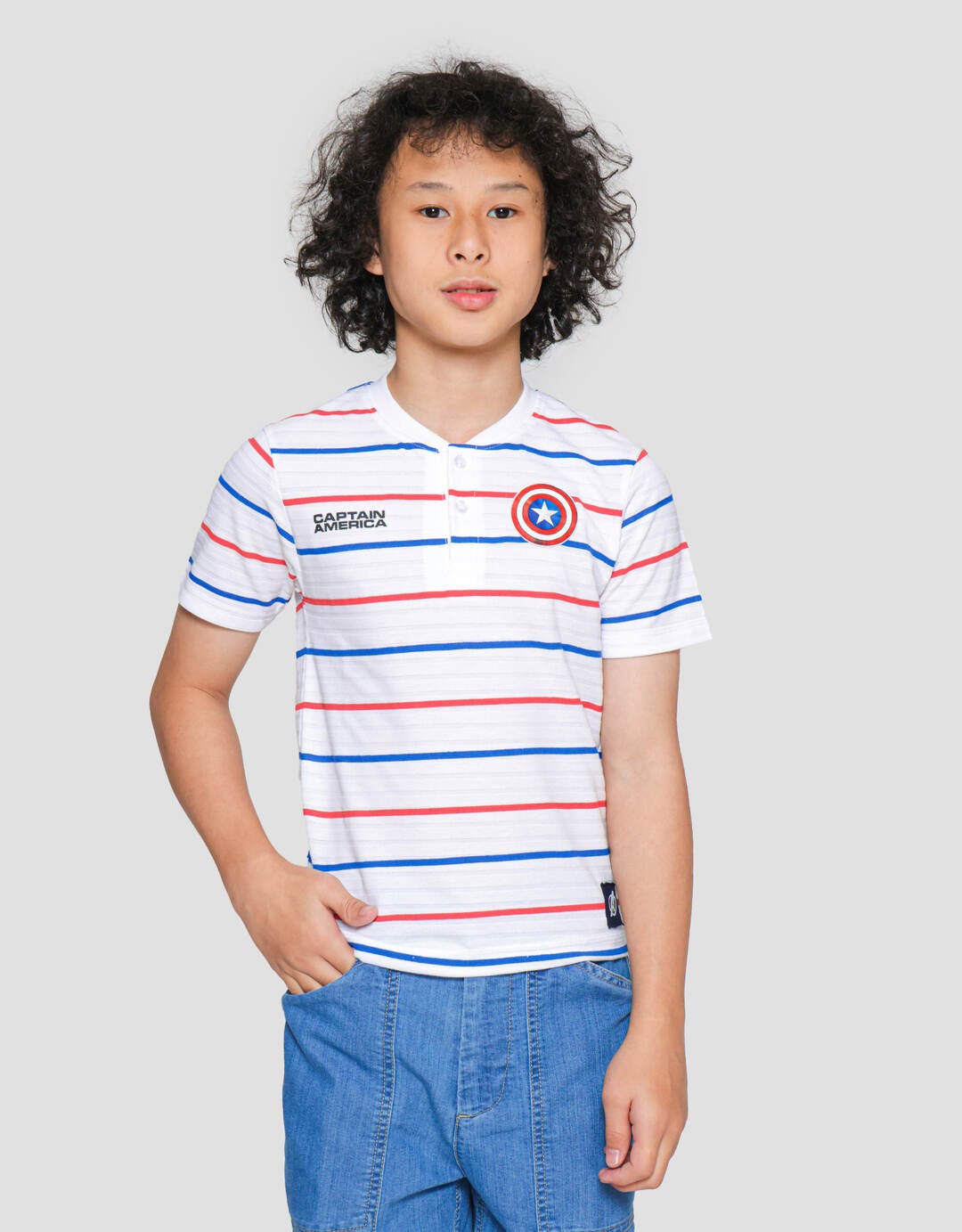 Marvel Captain America Stripe Kaos Henley Anak Laki-Laki