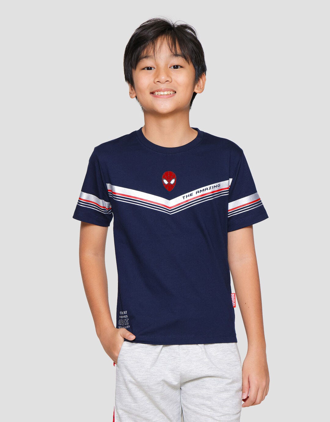 Marvel Spiderman Face The Amazing V Stripe Kaos Anak Laki-Laki