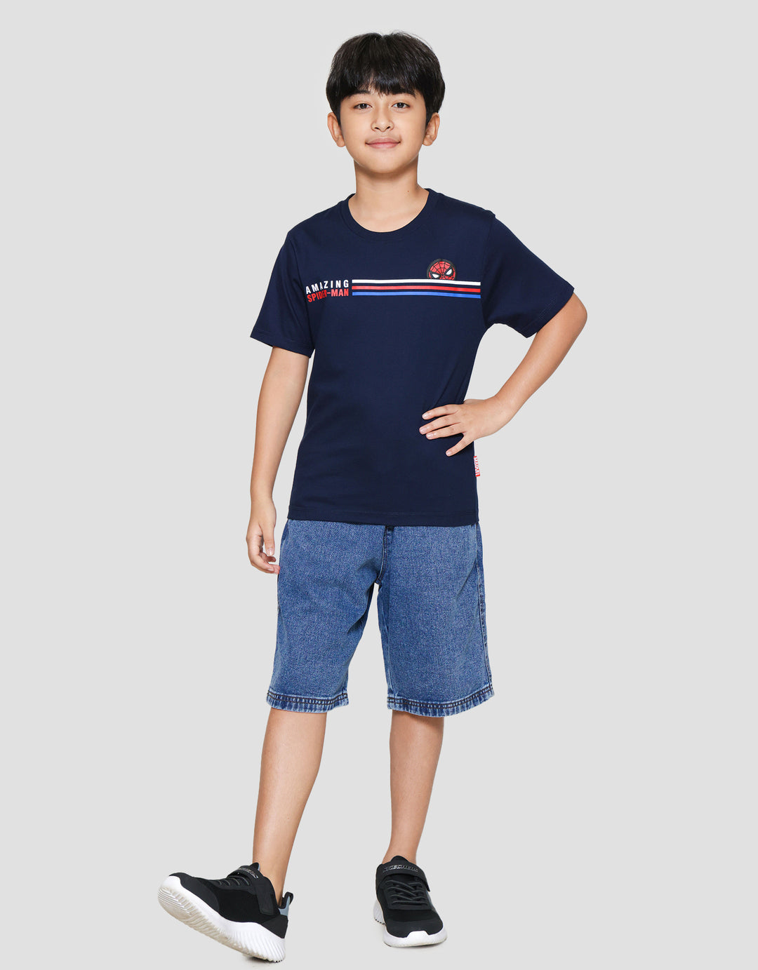 Marvel Spiderman Lis Tengah Print Kaos Anak Laki-laki