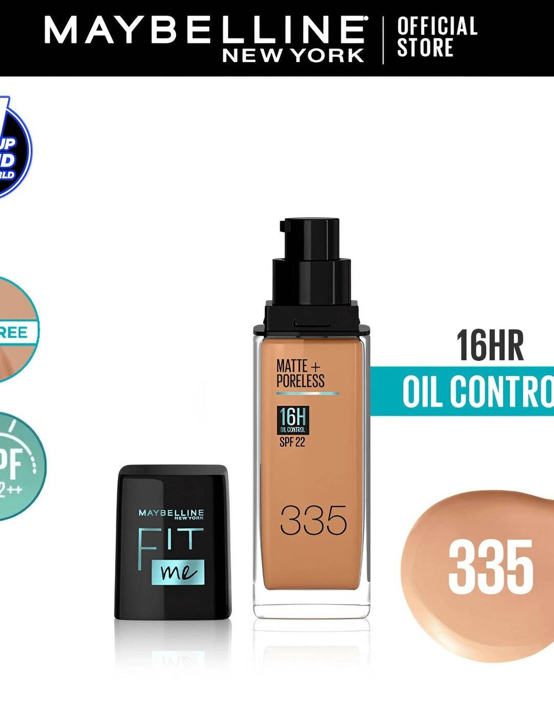 maybelline foundation fit me pump matte pore-335 fit me! matte + poreless foundation dengan formula ultra-lightweight. mengandung micro-powder yang mampu menyerap minyak berlebih untuk hasil matte dan tampak tidak berpori. the ultimate natural skin fit! dikhusukan untuk kamu kulit normal cenderung berminyak.