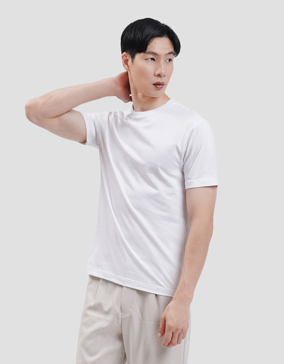 Tampil simpel namun tetap stylish dengan kaos pria basic warna putih yang menjadi item wajib di setiap lemari pria modern. Desain polos tanpa motif memberikan kesan clean, rapi, dan versatile sehingga mudah dipadukan dengan berbagai gaya outfit.
