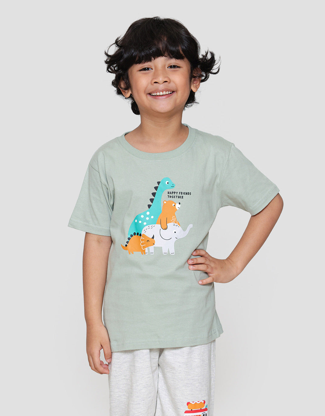 Kaos anak laki-laki dengan design yang simple dan casual, cocok untuk digunakan anak pada moment berharga mereka untuk menunjang penampilan anak menjadi lebih menawan.