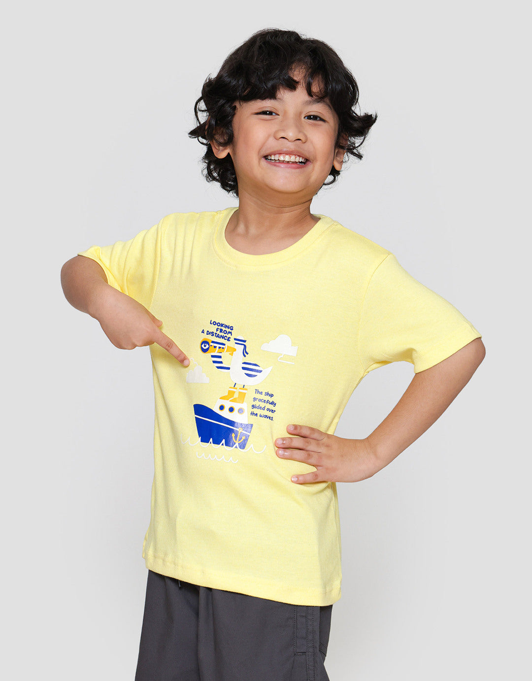 Kaos anak laki-laki dengan design yang simple dan casual, cocok untuk digunakan anak pada moment berharga mereka untuk menunjang penampilan anak menjadi lebih menawan.