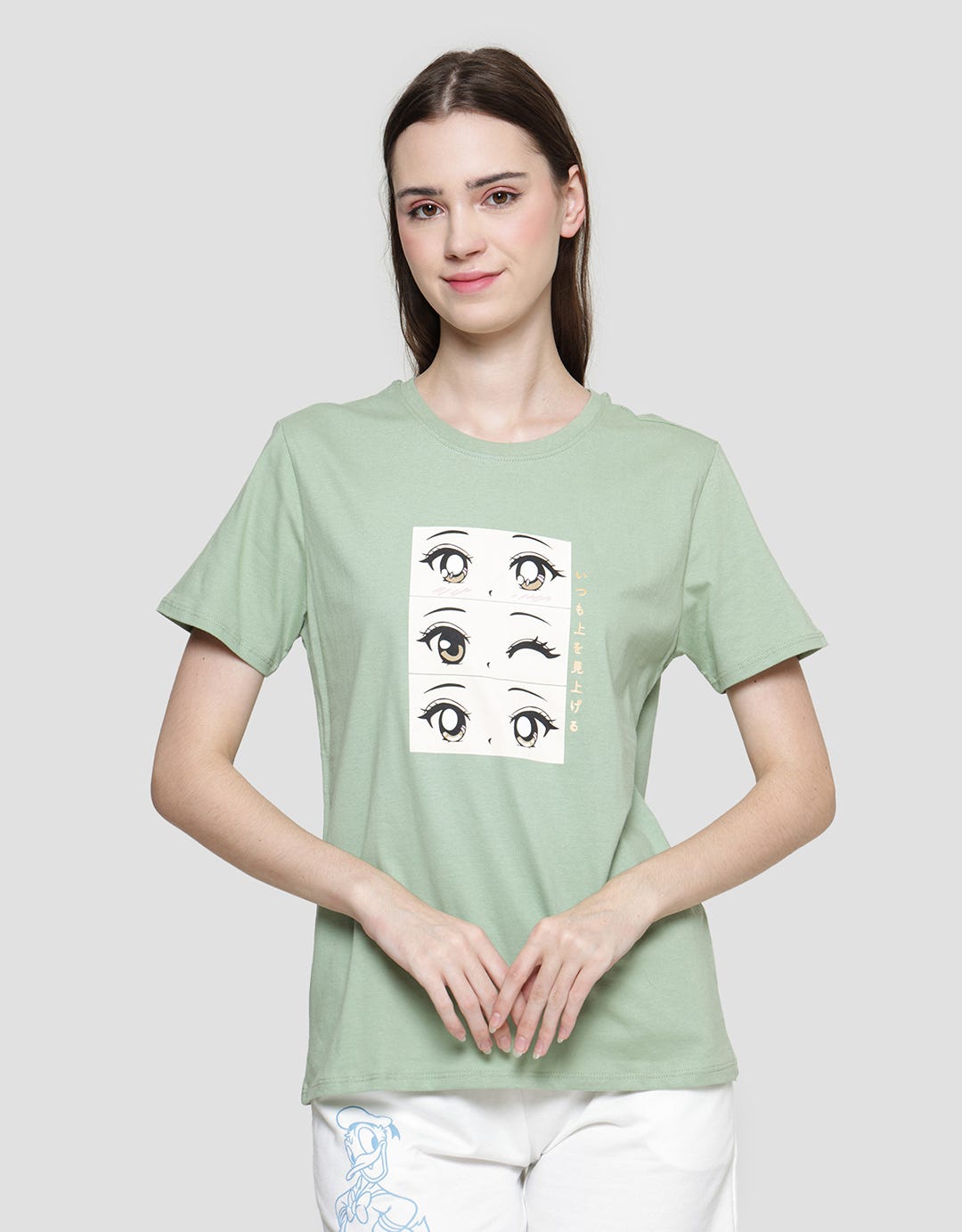 Nevada Anime Eyes Print Kaos Lengan Pendek Wanita