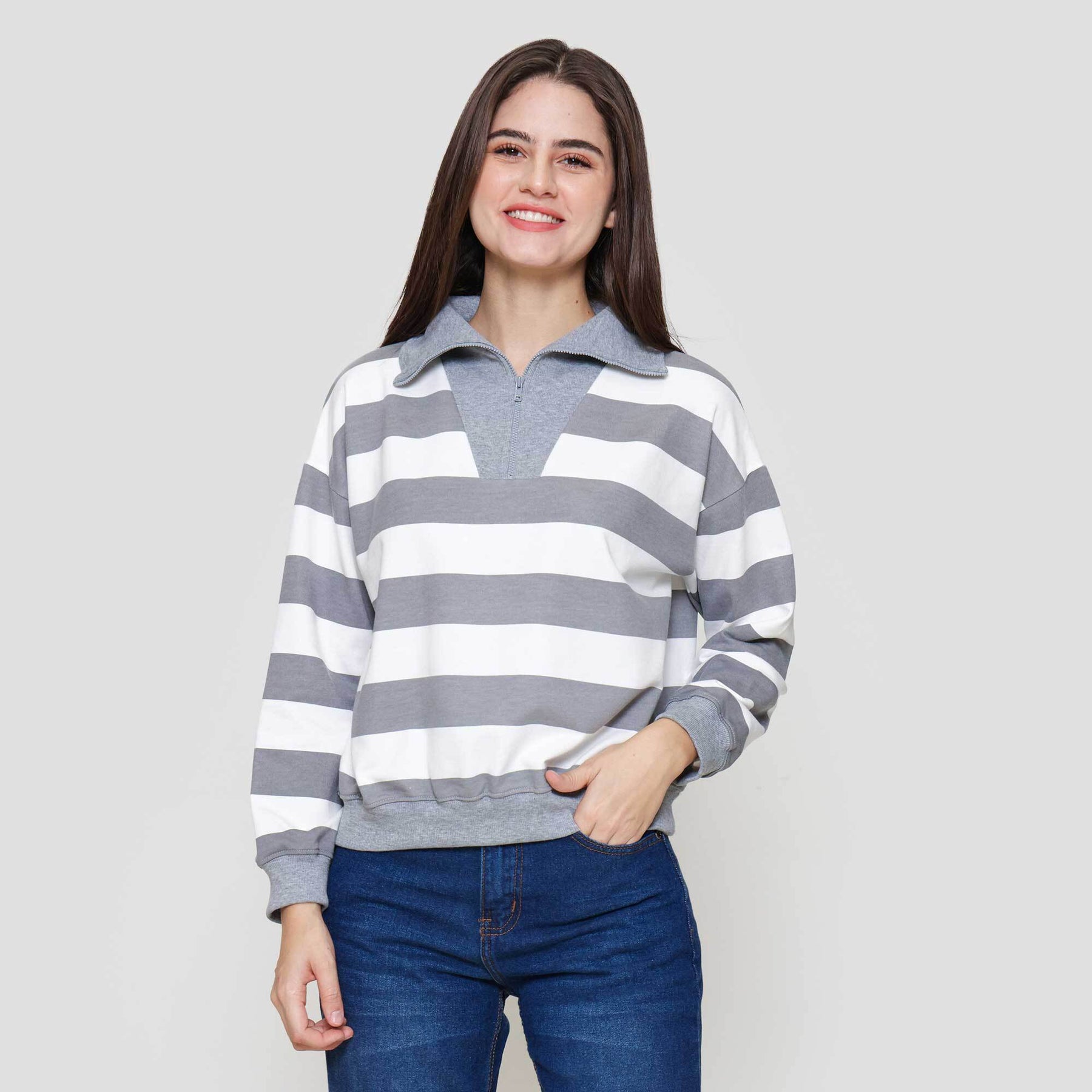 Nevada Babyterry Reg Stripe W/ Zipper Sweater Wanita