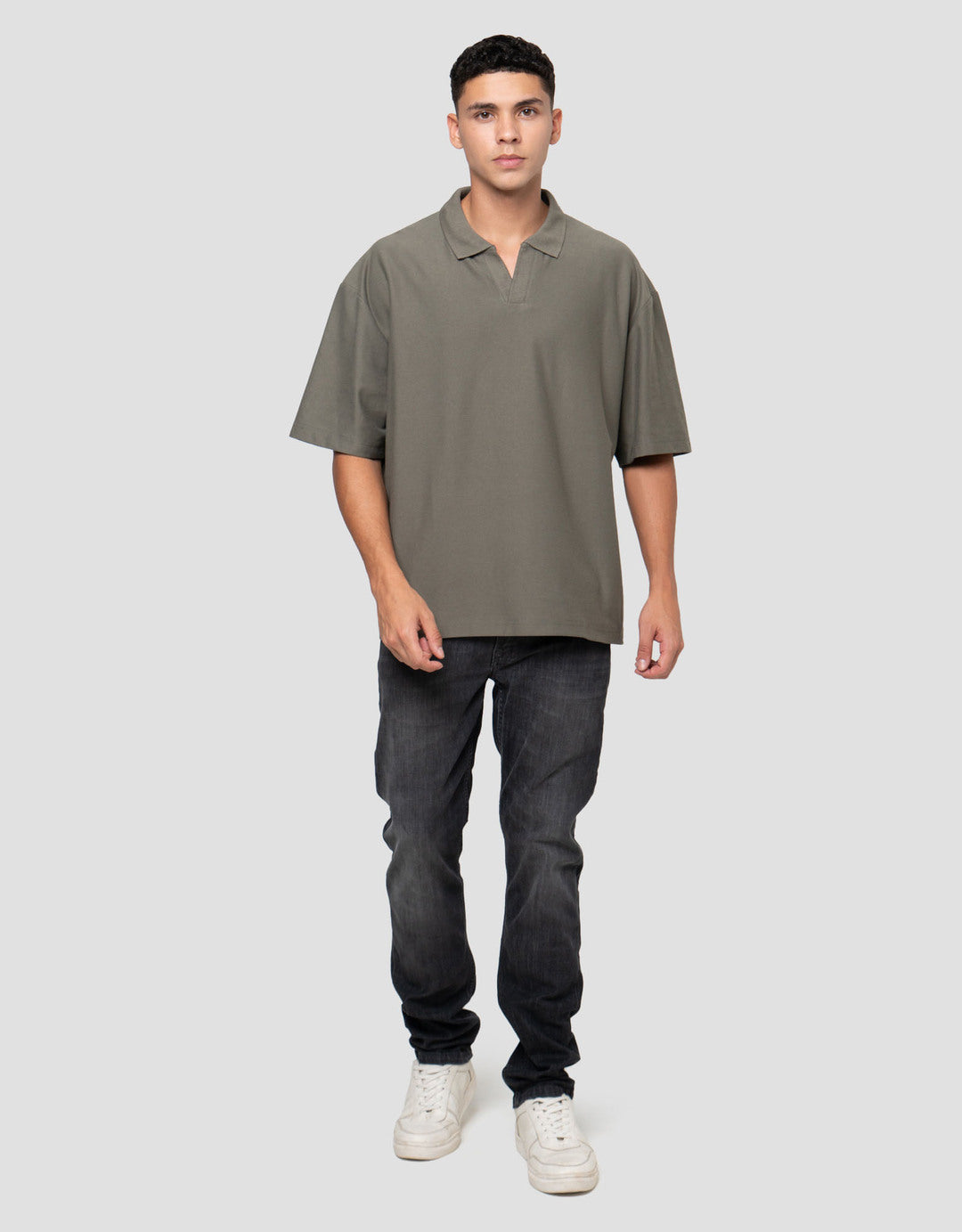 Nevada Basic Lapel Rib Texture Polo Oversize Pria