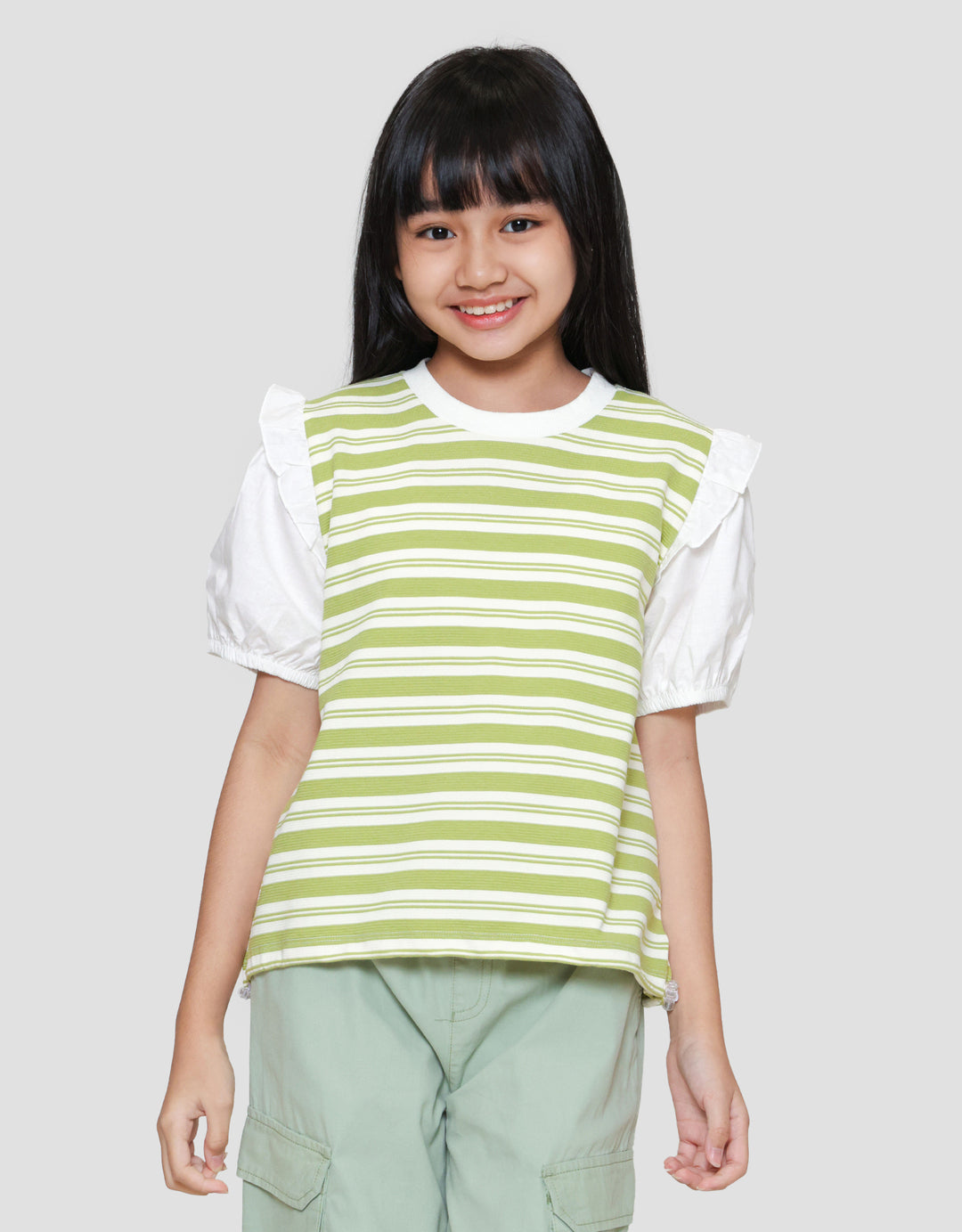 Kaos anak perempuan dengan model yang simple dan casual, cocok untuk dijadikan outifit keseharian saat anak beraktifitas. Bahan yang berkualitas akan nyaman saat digunakan sepanjang hari.