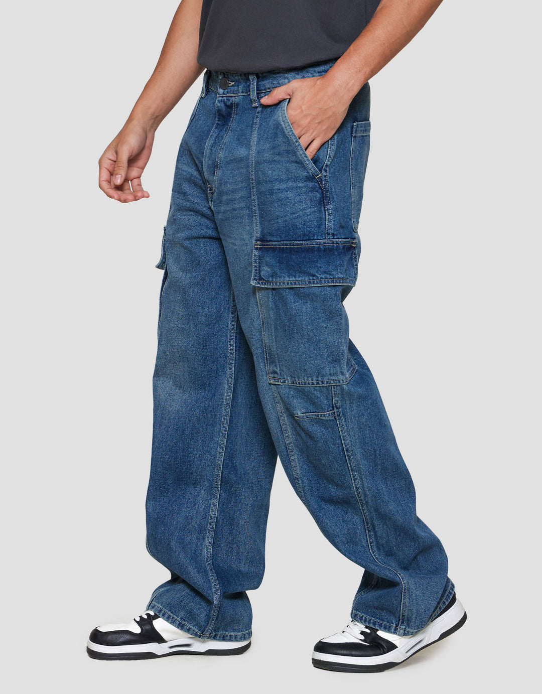 Nevada Cargo Cut And Sewn Loose Fit Celana Denim Pria